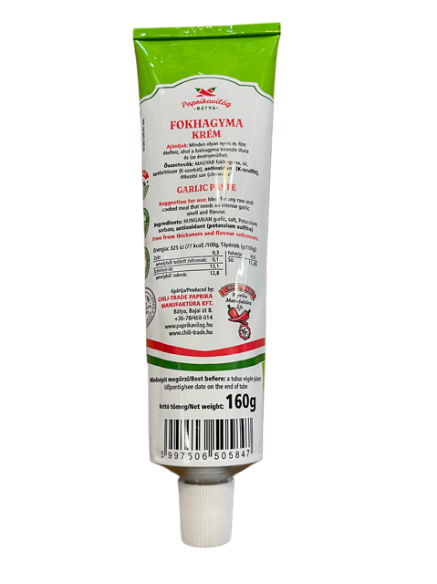 A Kóser Paprikavilág Fokhagymás Krém 160 g intenzív, mégis harmonikus aromájú, krémes állagú készítmény, amely koncentrált fokhagyma aromát biztosít anélkül, hogy a friss gerezdeket meg kellene hámozni és aprítani.