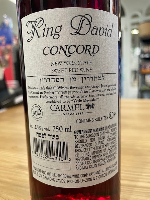 King David Concordédes vörösbor, a Carmel Pincészet hagyományos, kóser terméke. Az amerikai Concord szőlőfajtából készül, és jellegzetes, édes, gyümölcsös ízvilággal rendelkezik. Termék adatok