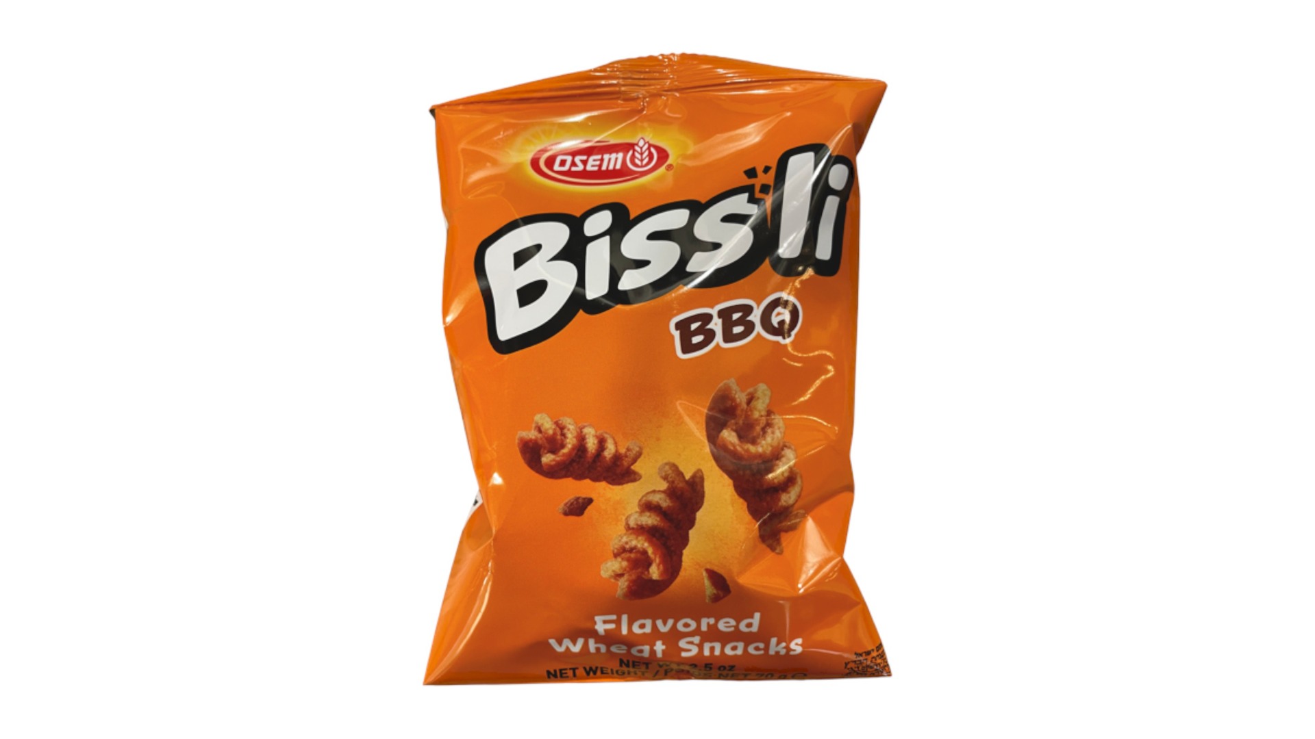 Osem Bissli Barbecue ízű búzából készült ropogós snack. Ez egy népszerű izraeli rágcsa, amelyet tésztaszerű formában állítanak elő, és fűszeres barbecue ízesítéssel vonnak be. Termékinformációk