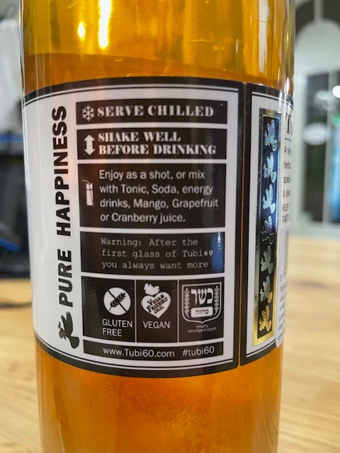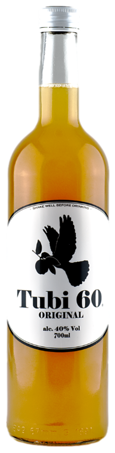 TUBI 60. Összetevők: víz, alkohol, citrom, cukor, gyógynövények, virág-, és fa kivonatok